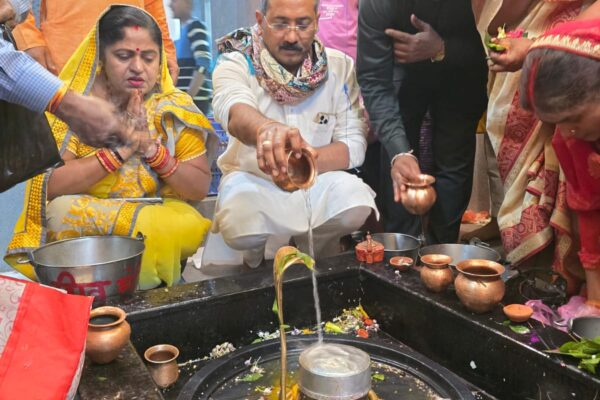 महाशिवरात्रि पर जिला पंचायत सदस्य अनिता राजेन्द्र शुक्ला ने किया शिव रुद्राभिषेक।